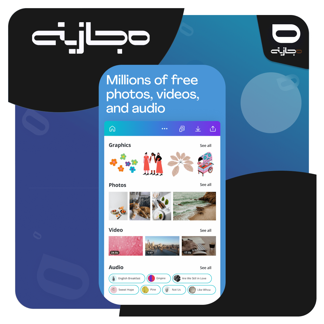 ✅ کانوا یک برنامه طراحی تصاویر گرافیکی است که، شما با خرید اکانت Canva از مجازیته میتوانید بهتمامی محتوای آن بهطور کامل دسترسی داشته باشید. یکی از مزیتهای خرید اشتراک کانوا از مجازیته قانونی بودن آن میباشد. شما توسط مجازیته به خانواده کانوا دعوت میشوید و میتوانید بهصورت ماهانه و یا سالیانه به محتوای کانوا دسترسی داشت باشید.